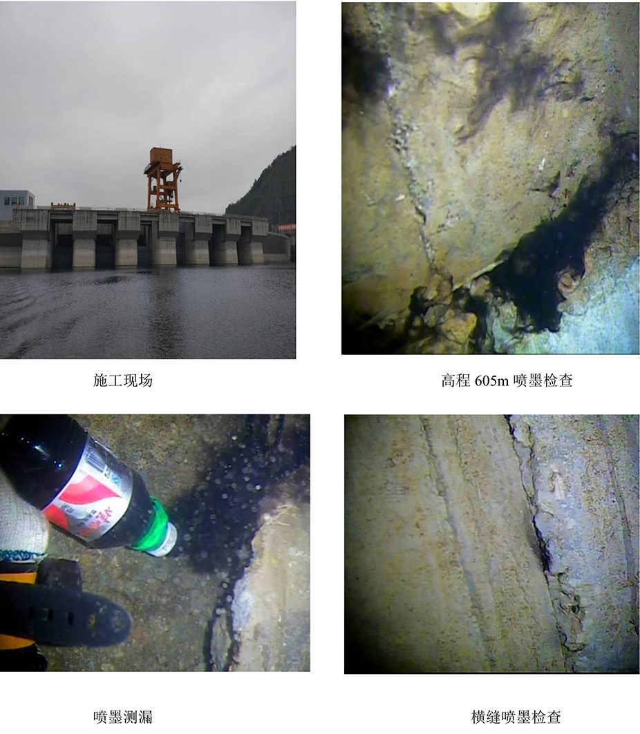 【概要描述】EL590m 壩體廊道 Y-65 排水管來水上游壩面 滲漏水下檢查
