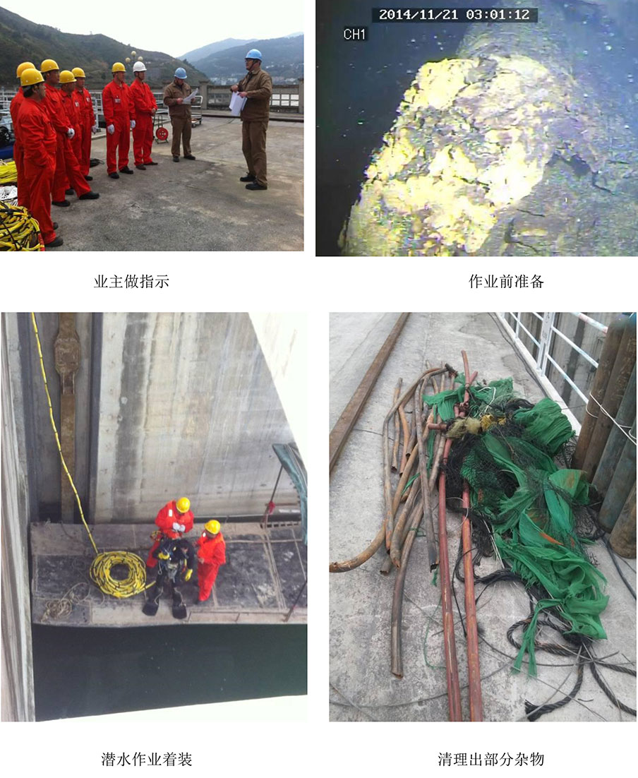 3#、4#溢洪道網(wǎng)箱水下切割工程;作業(yè)水深 40 米